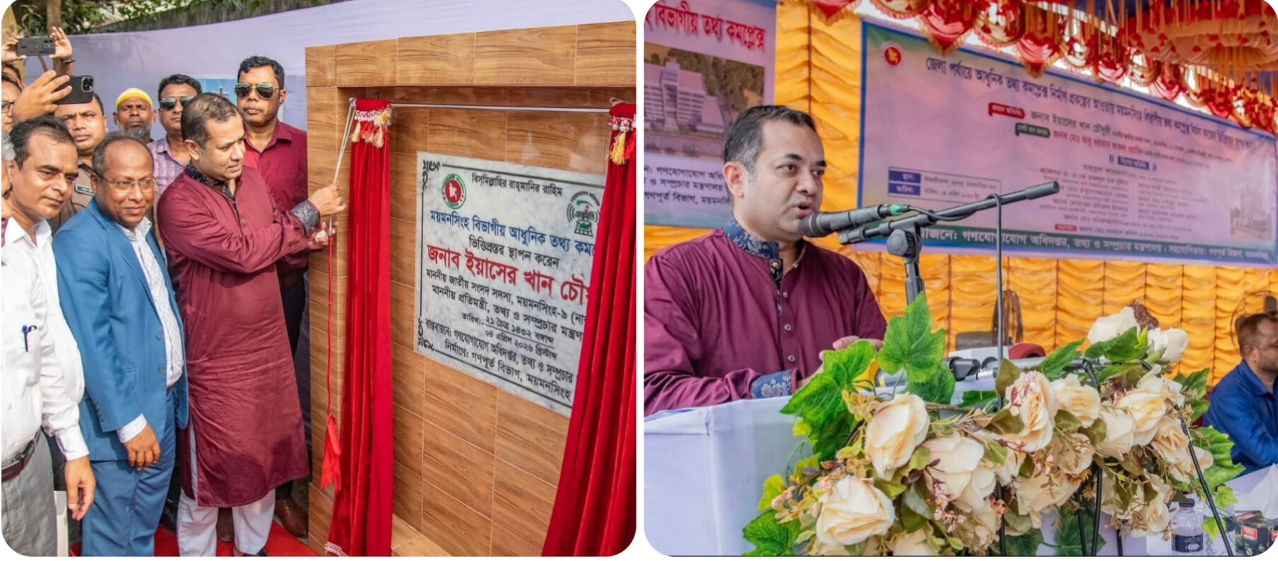 জেলা পর্যায়ে আধুনিক তথ্য কমপ্লেক্স নির্মাণ প্রকল্পের আওতায় ময়মনসিংহ বিভাগীয় তথ্য কমপ্লেক্স নির্মাণ কাজের ভিত্তিপ্রস্তর উন্মোচন করেছেন তথ্য ও সম্প্রচার প্রতিমন্ত্রী ইয়াসের খান চৌধুরী।
