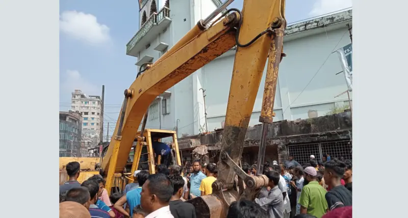 ময়মনসিংহ রেলওয়ে স্টেশন এলাকায় অবৈধ ফুটপাত উচ্ছেদে যৌথবাহিনীর অভিযান