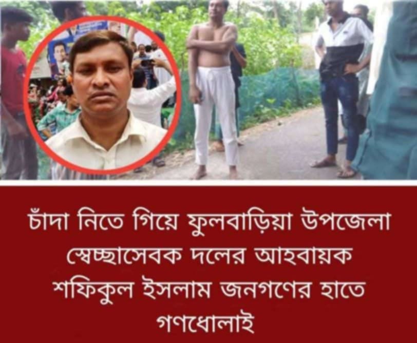সম্প্রতি অভিযোগ উঠেছে ময়মনসিংহের ফুলবাড়িয়া উপজেলা স্বেচ্ছাসেবক দলের আহবায়ক শফিকুল ইসলামের বিরুদ্ধে। তিনি চাঁদা চাইতে গিয়ে জনতার হাতে গণধোলাই খেয়ে আহত হয়েছেন বলে জানা গেছে।